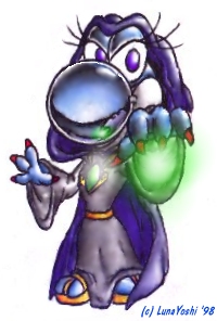 | Morgana, evil yoshi magician lady. First person I've ever known who made their char evil. O_o Ooo, shpooky... Morgana is ©her kick-butt evil self. | |