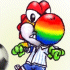 | Some soccer yoshi I drew for RainboYosh. God, this was super late. He chewed me out for it, I remember (grrr, bye bye, requests!!) Drew it during nutrition break. Wow... Soccer is ©RainboYosh. Soccer ball is ©that one person's name at the bottom of the pic. | |